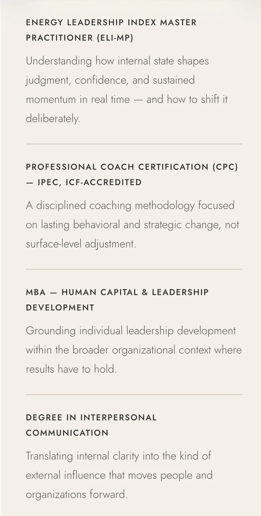 But at a certain point, the approach that got them here stops being enough for what comes next. They don't need more strategy or more pressure. What they want is to achieve their next level of results with more clarity, more steadiness, and less of the friction and second-guessing that comes from operating without a strong internal foundation.