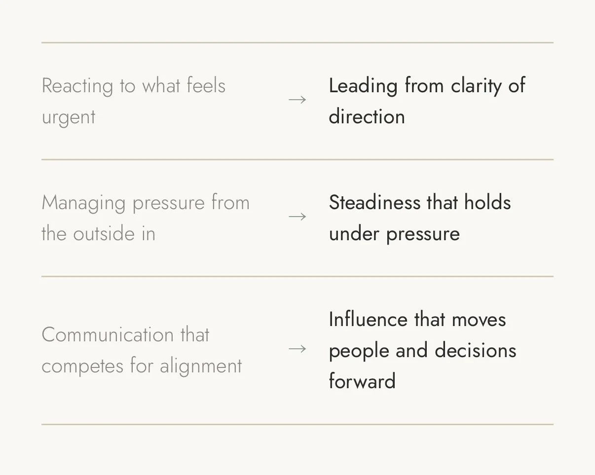 This is where the work shifts — from adding more to strengthening the conditions that determine how you think, decide, and lead when it matters most.